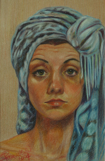 Una smorfia, un turbante ricavato da un pareo, l’azzurro e via… alzo le sopracciglia, scoppio a ridere, sono e so di essere, una personcina molto buffa. Continuo a ridere, mentre l’altra Cristina mi rimprovera perché ha fretta di disegnare.